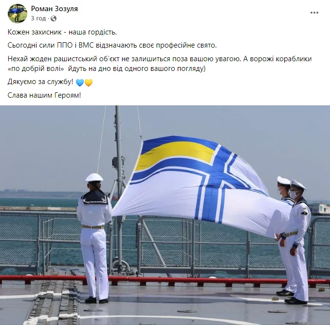 "Кожен захисник – наша гордість. Сьогодні сили ППО і ВМС відзначають своє професійне свято.