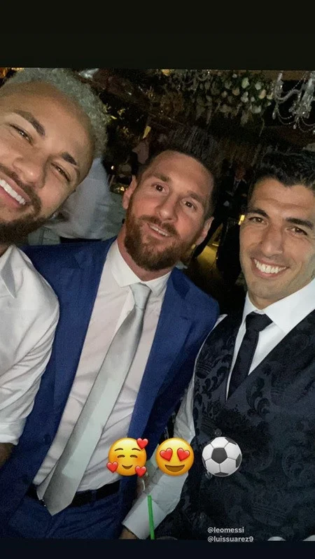 Як виявилося, Неймар зустрівся із Мессі та Суаресом в Уругваї. Останній влаштував урочисту церемонію оновлення весільних обітниць. Зі своєю дружиною Софією Бальбі Суарес одружився у 2009 році, вони виховують трьох дітей.