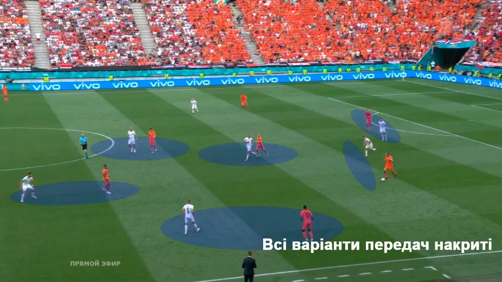 "Ораньє" у груповому етапі вразили яскравим футболом, причому громити вдавалося навіть суперників з дуже інтенсивним пресингом – 39 пресинг-дій на чужій третині не допомогли австрійцям уникнути виносу "всуху". Цей аспект був особливо важливим, адже перед Євро-2020 ключовою проблемою голландців називали роботу під тиском у першій стадії розіграшу м'яча. Зокрема, саме завдяки високому пресингу шотландці тактично переграли Нідерланди в контрольній зустрічі прямо перед чемпіонатом (перемогти по рахунку не дав геніальний штрафний Депая).