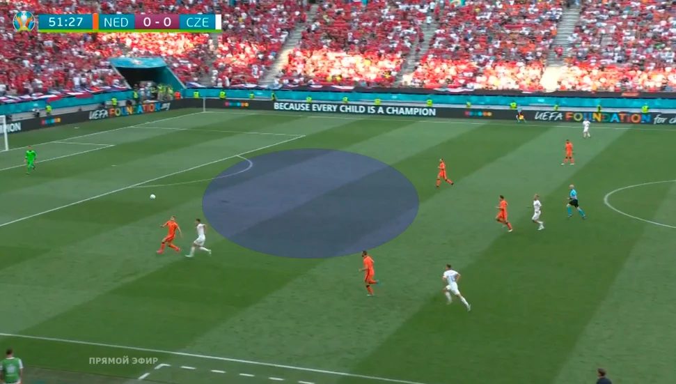 Тут виникають питання і до психологічного налаштування, адже голландці регулярно недогравали епізоди. Наприклад, моменту з ударом Соучека передували 10 секунд боротьби 2-на-2 на правому фланзі – з середини поля ніхто не спустився на допомогу ван Анхольту й де Лігту. Між тим, це все одно необхідно було робити, адже центральна зона залишалася вільною для обіграшів чехів.