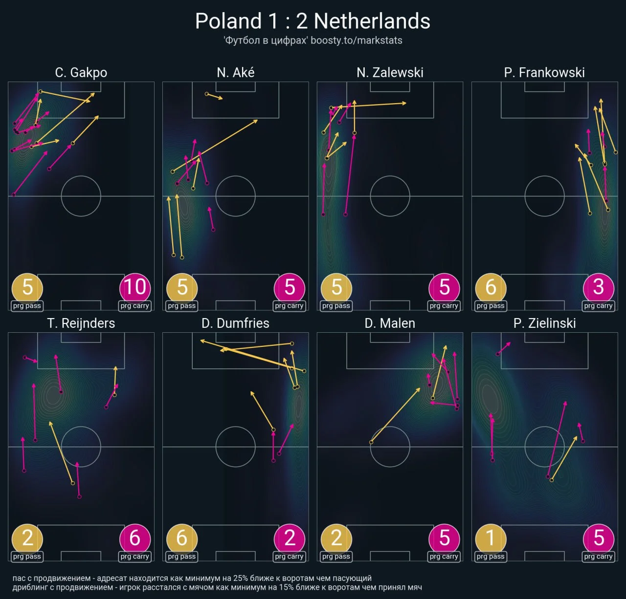 Що і говорити, коли навіть у центрбека Аке було 4 передачі під удар включно з асистом. Тим не менш, перед чужим карним майданчиком виникали певні проблеми. "Ораньє" явно бракувало цікавих ідей – здебільшого все зводилось до індивідуальних рішень Гакпо або до кросів. Саме тому поляки тримали нічийний рахунок до 83-ї хвилини, хоча моментів все одно створили немало.