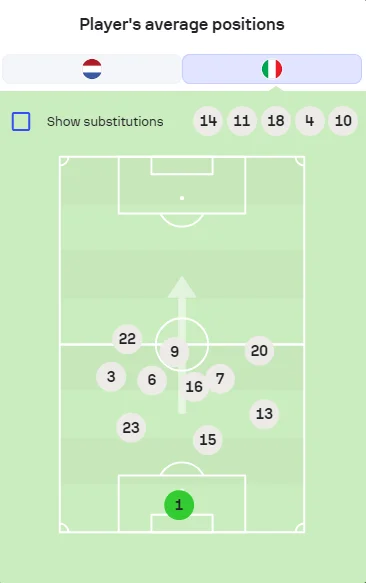 Роберто Манчіні заявив, що міг помилитись зі схемою. І він дійсно вирішив її змінити – на матч з Нідерландами італійці перебудувались з 3-5-2 на 4-3-3, характерні для епохи з Євро-2020. Були й масштабні кадрові перестановки.