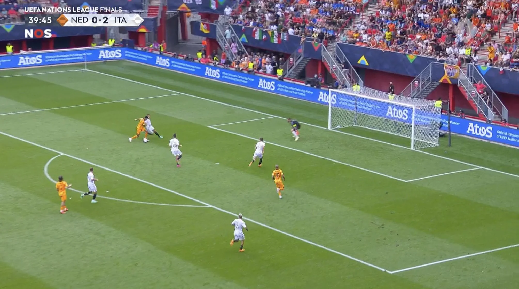 Джанлука стягнув на себе захисників і п'яткою скинув сферу на лівий край штрафного, куди без жодного спротиву зайшов Дімарко. Федеріко пробив з-під Дюмфріса у дальній кут. 0:1!