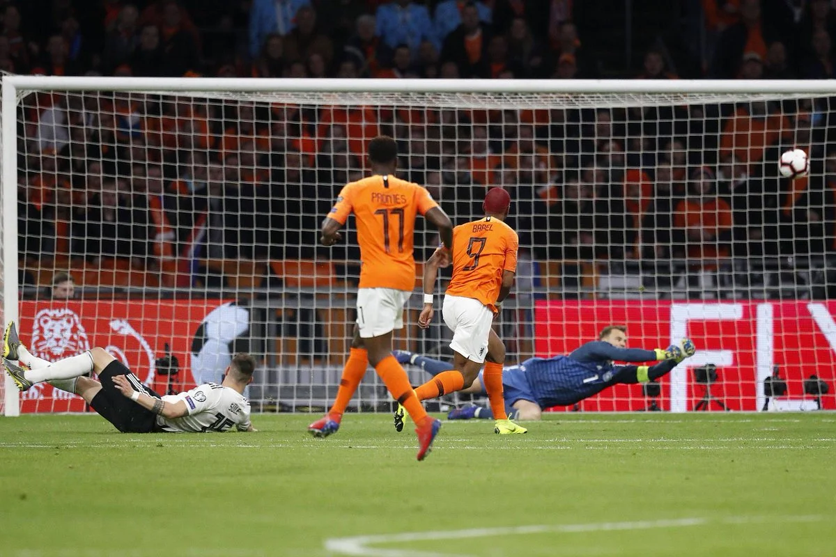 В рамках 2-го туру відбору до Євро-2020 збірна Німеччини, попри камбек Нідерландів на старті другого тайму, святкувала важку виїзну перемогу (2:3).