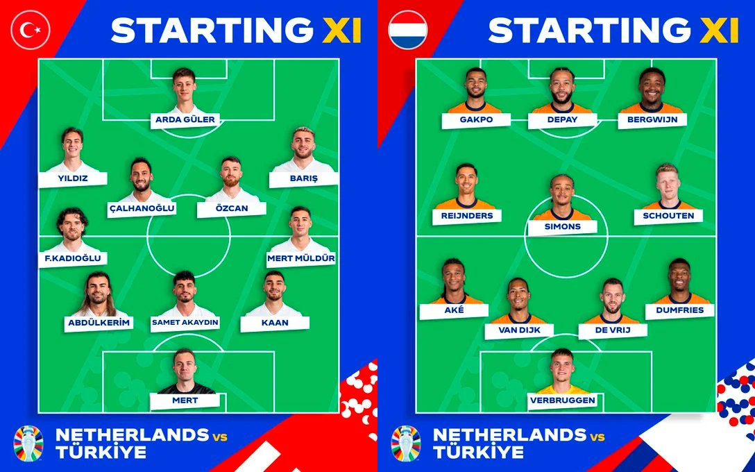 Рональд Куман, своєю чергою, повністю повторив стартовий склад з поєдинку проти румунів, хоча експерти прогнозували появу Малена на правому фланзі атаки. Донніел круто вийшов на заміну в попередній грі, але Бергвейн зберіг довіру коуча.