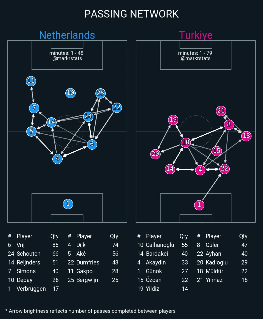 Команда просто не розуміла, як зламати блок турків. У підопічних Рональда Кумана майже не було динаміки й передач за спину, а особливо не вистачало руху між лініями. Сіммонс і Депай декілька разів займали непогані позиції, але своєчасних пасів не отримували. Як і футболісти на флангах – Нідерланди дуже погано використовували ширину.