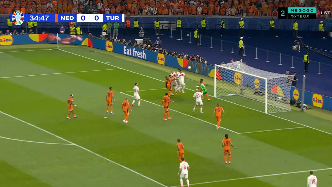 Ідея неоднозначна, адже "місячні зірки" дуже сильні у верхових дуелях – як і в контролі зон завершення при подачах і прострілах. Досить довго турки підтверджували цей факт. Винятком міг стати епізод на 51-й хвилині, коли Вегхорст зачепився за подачу та скинув м'яч вздовж лінії воротарського. Депай замкнути не встиг (Акайдин зіграв до кінця), а потім лайнсмен підняв прапорець.