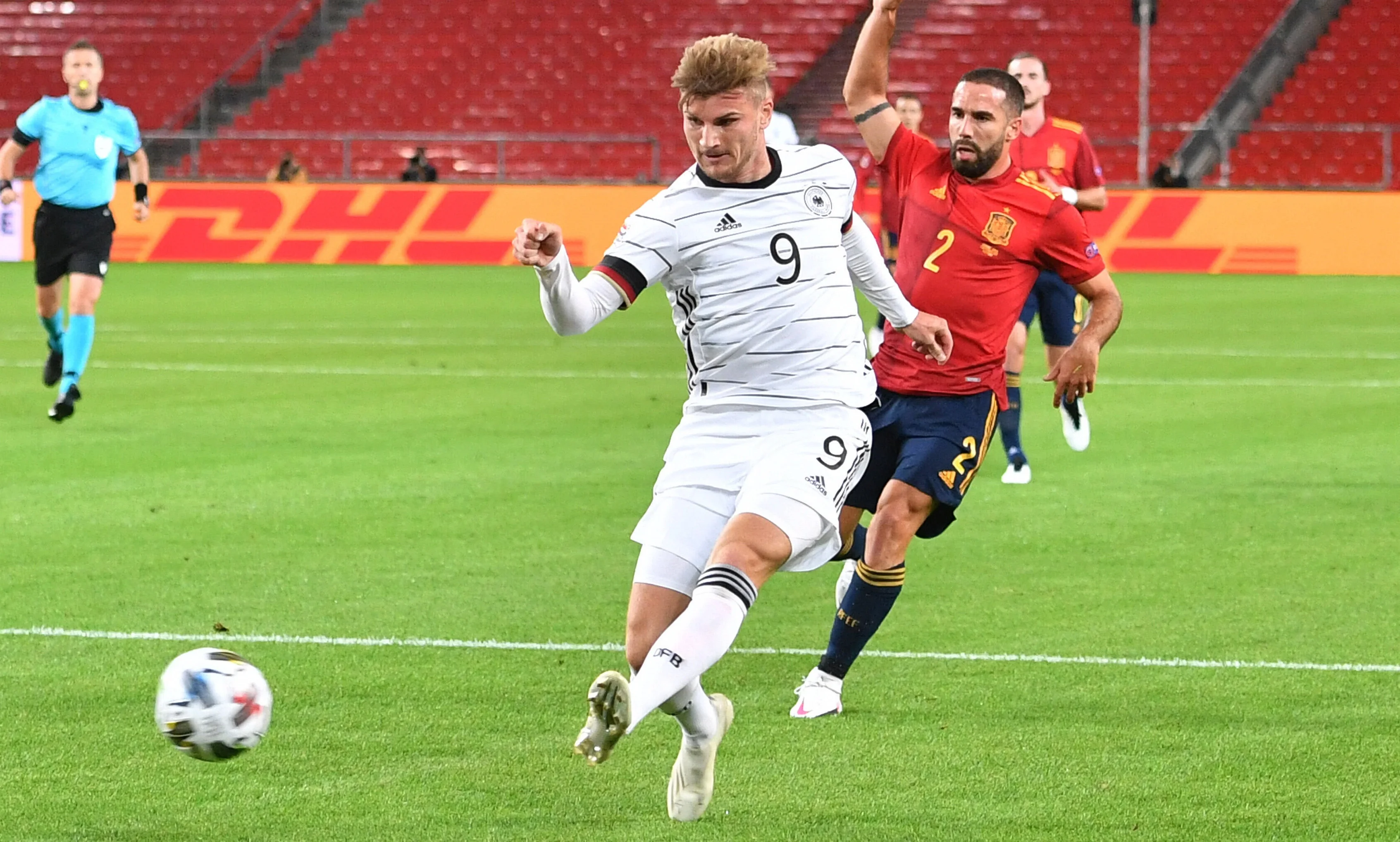 Луїс Енріке спробував зламати гру замінами, випустивши Ансу Фаті та Меріно. Втім, Німеччина грамотно оборонялася. Та й атакувала все одно значно гостріше. Вкотре довелося вступати у гру Де Хеа, а Вернер ще двічі вистрибнув на чужі ворота – раз завадив офсайд, раз Тімо пробив поруч зі стійкою.