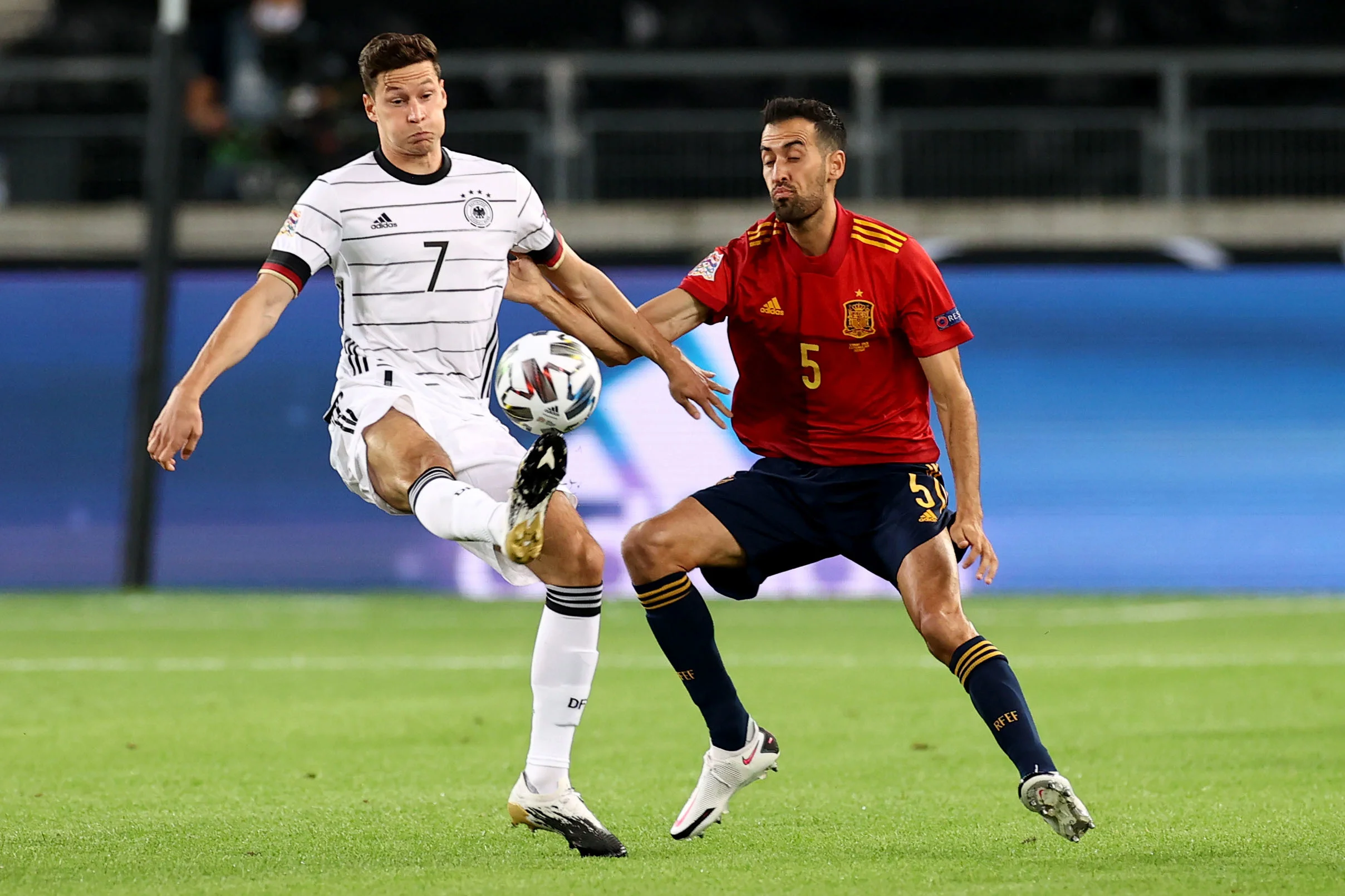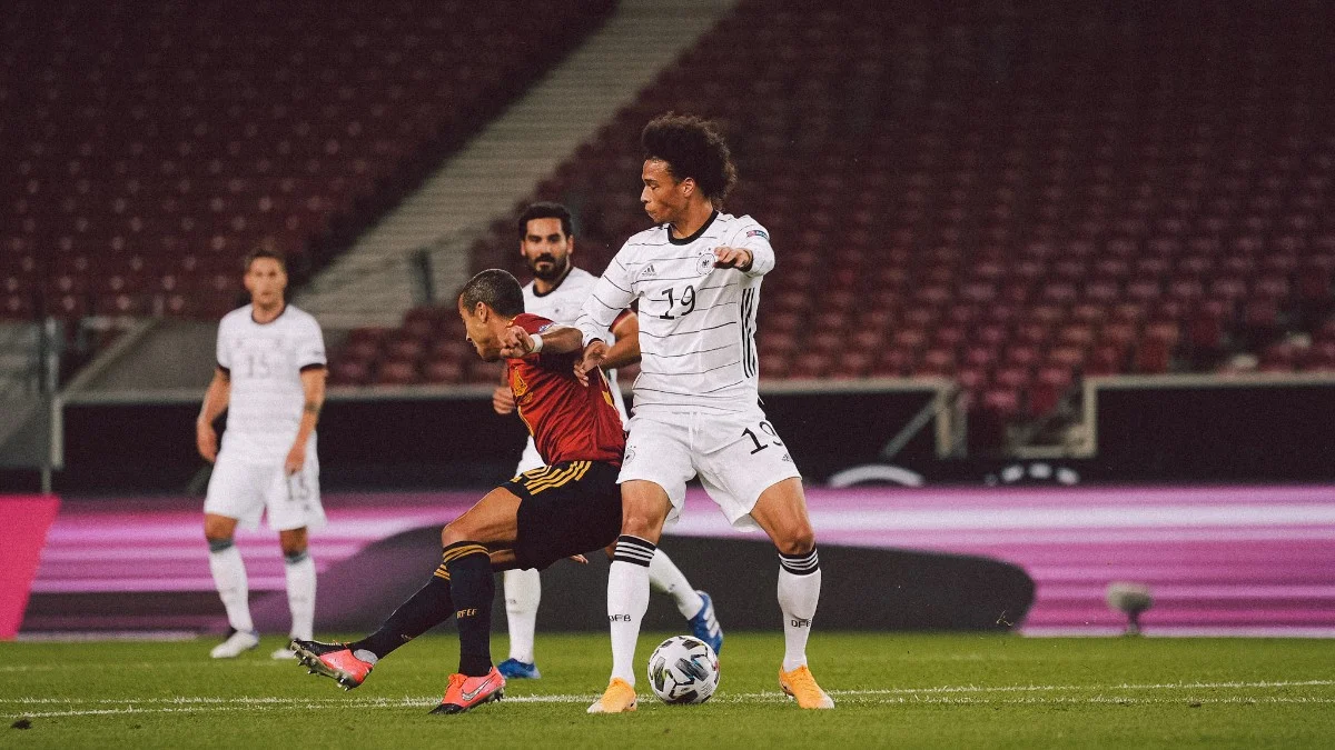 Поки українці екзаменували Швейцарію, в паралельному матчі зустрілися фаворити групи Німеччина та Іспанія. Обидві команди розпочали Лігу націй не в оптимальному складі. Йоахім Льов свідомо ослабив Бундестім, не викликавши низку футболістів, які у серпні довго затрималися в єврокубках, а Луїс Енріке втратив кількох виконавців через позитивні тести на COVID-19.