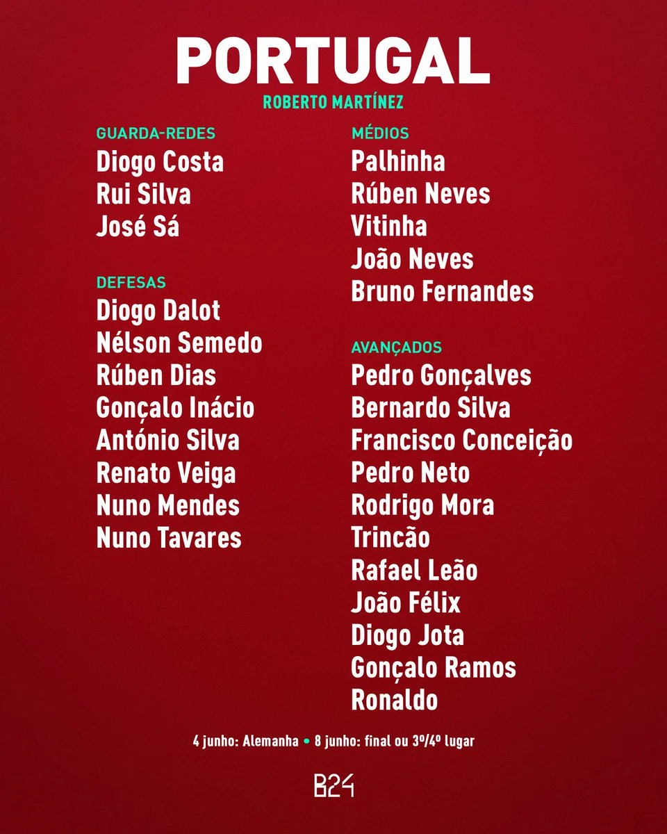 Португалія привезла більш зірковий склад. Роберто Мартінес вніс до заявки Леау, Феліша, Бруну Фернандеша, Жоту, Далота, Рубена Діаша, Бернарду Сілву та чотирьох переможців Ліги чемпіонів (Вітінью, Нуну Мендеша й Жоау Невеша). Це тільки якщо говорити про найбільш "попсові" кадри – а ще є такі серйозні виконавці, як Палінья (представник Баварії), Педру Нету (Челсі), Франсішку Консейсау (Юве) тощо.