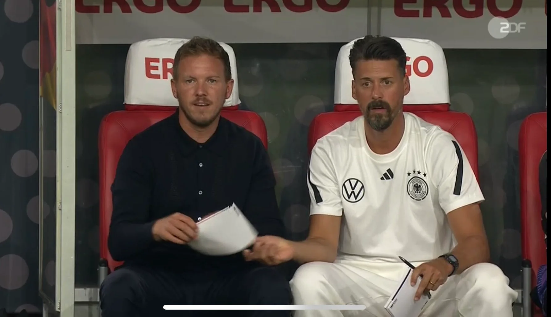 В середині тайму Німеччина вийшла вперед: Вірц з правого флангу перевів діагональ на дальню стійку, сфера прилетіла до Мусіали, який виманив на себе голкіпера й елегантно відпасував на Фюлькруга – форвард Вест Хема легко переправив м'яч у порожні ворота.