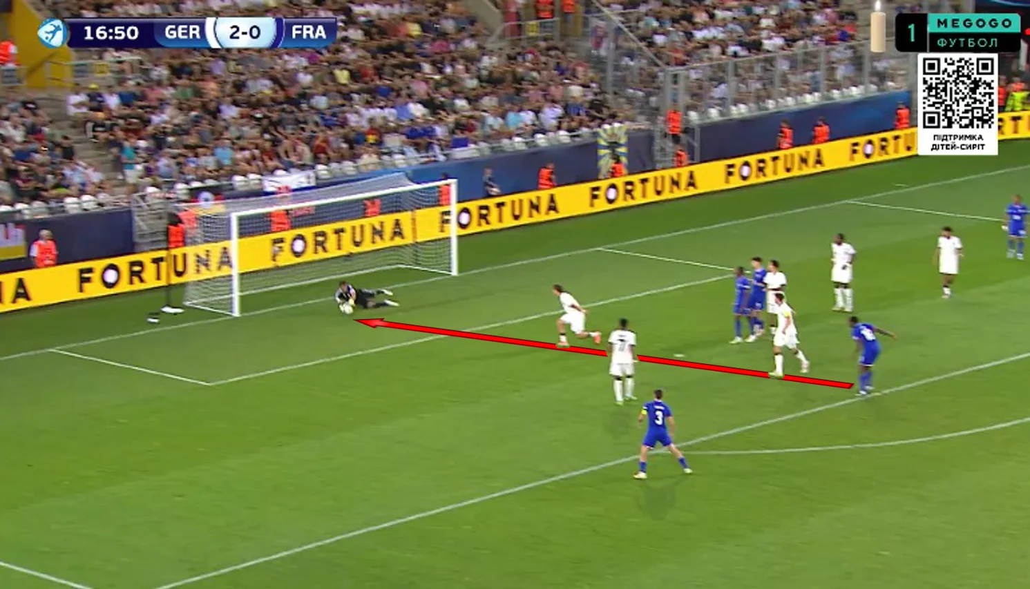 На 15-й же хвилині німці подвоїли свою перевагу. Спочатку французам не вдалося перехопити закидання з глибини – а потім Магасса не зміг вибити м'яч з-під Вайпера, дозволивши прокинути сферу в штрафний на Вольтемаде. Ніко вийшов сам на сам і спробував перекинути голкіпера. Ресте зачепив м'яч, але завадити пробити по воротах вдруге не зміг. 2:0.
