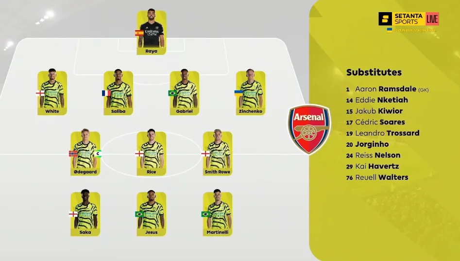 Так, на 53-й хвилині Сака відкрився на правому куті воротарського й прийняв своєчасну передачу від Едегора. Його подальший удар парирував Тьорнер. На 57-й же Букайо відгукнувся на проникний пас від Вайта, змістився лівіше й п'яткою скинув Едегору – Мартін же продовжив на Жезуса.