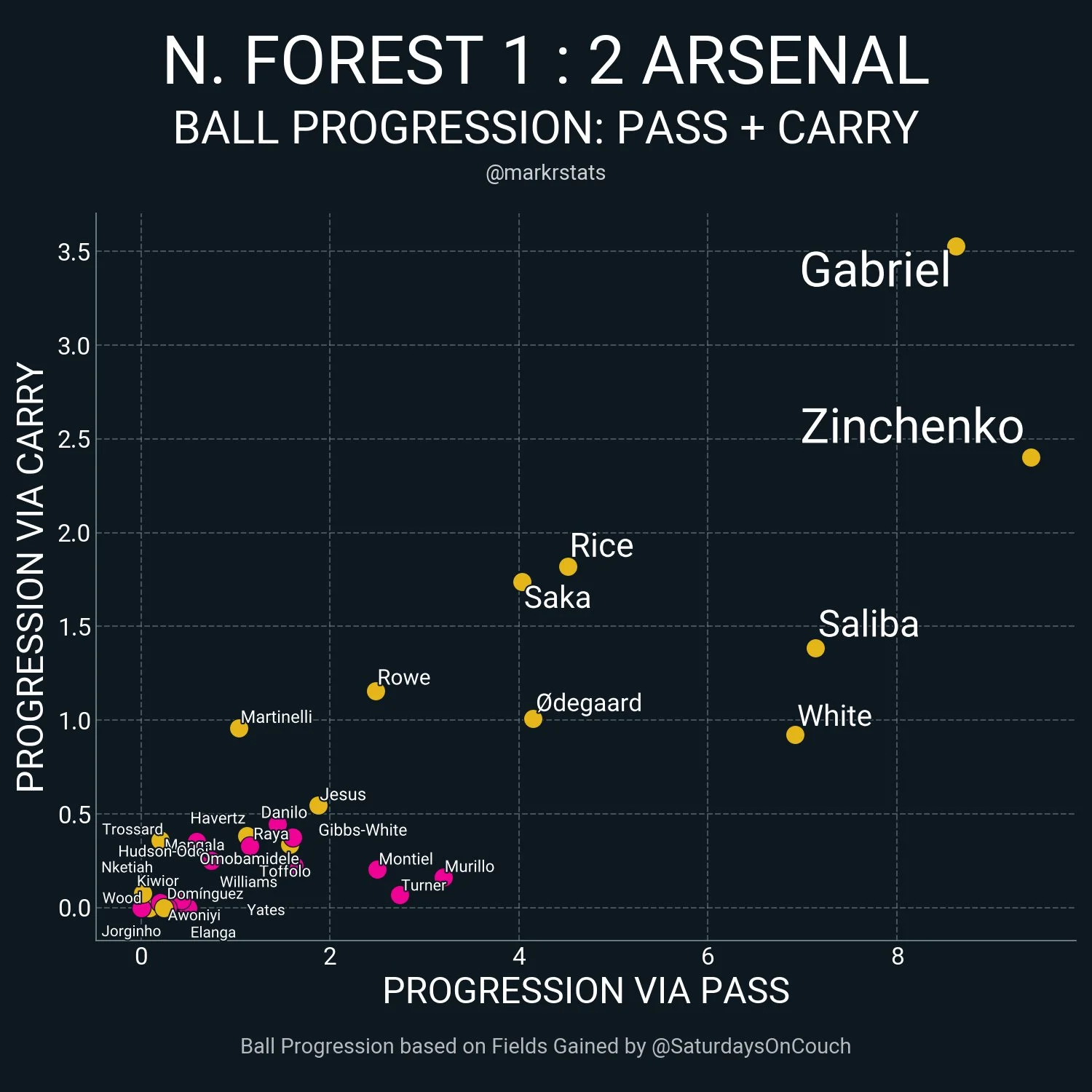 А після цих передач Арсенал розігнав атаку з моментом Сака. Першим у другому таймі.