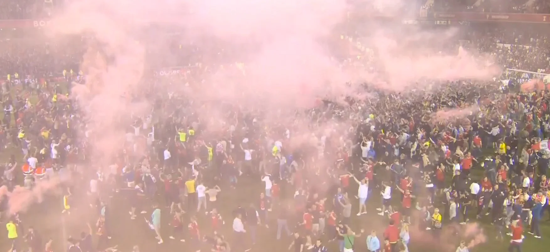 Схоже, уболівальникам Ноттінгема не сказали, що для виходу в АПЛ потрібно виграти ще один матч. Після гри вони влаштували грандіозне божевілля на футбольному полі. Буде дуже прикро, якщо доведеться поплатитися за це передчасне святкування.