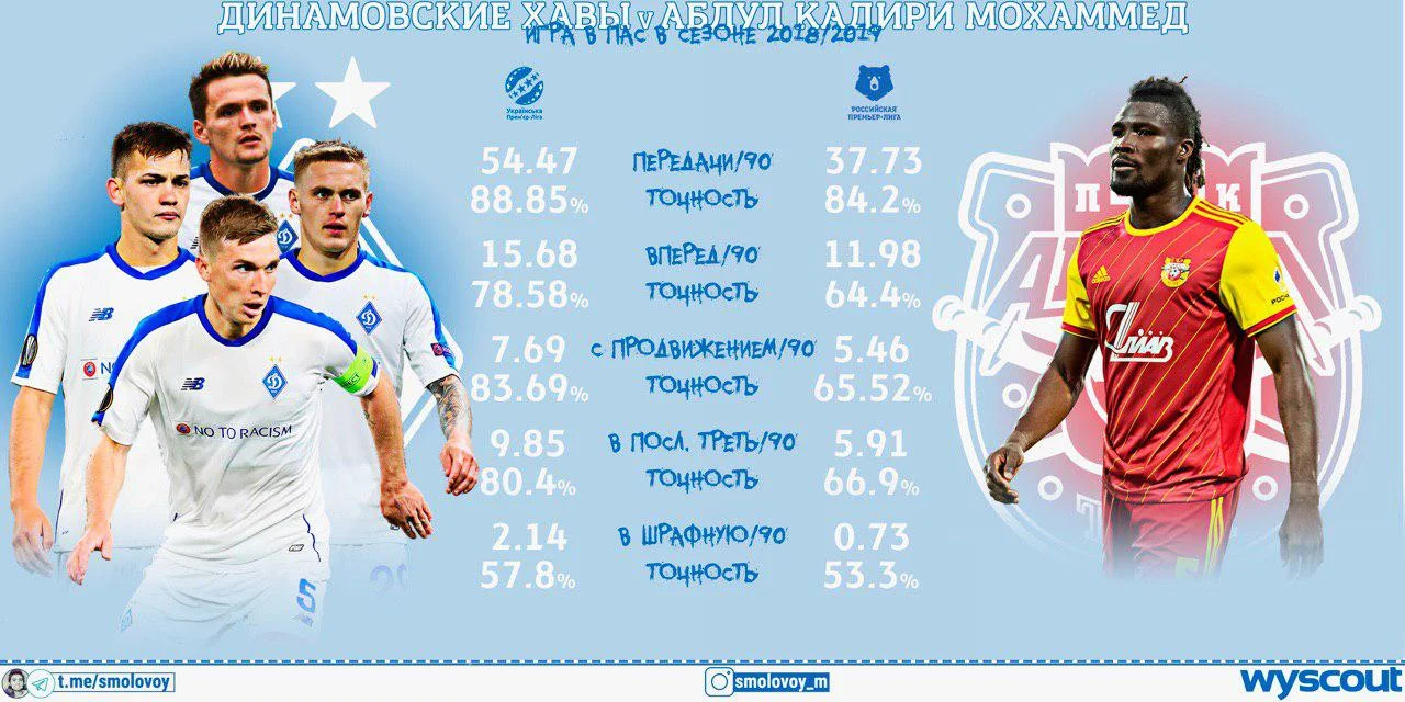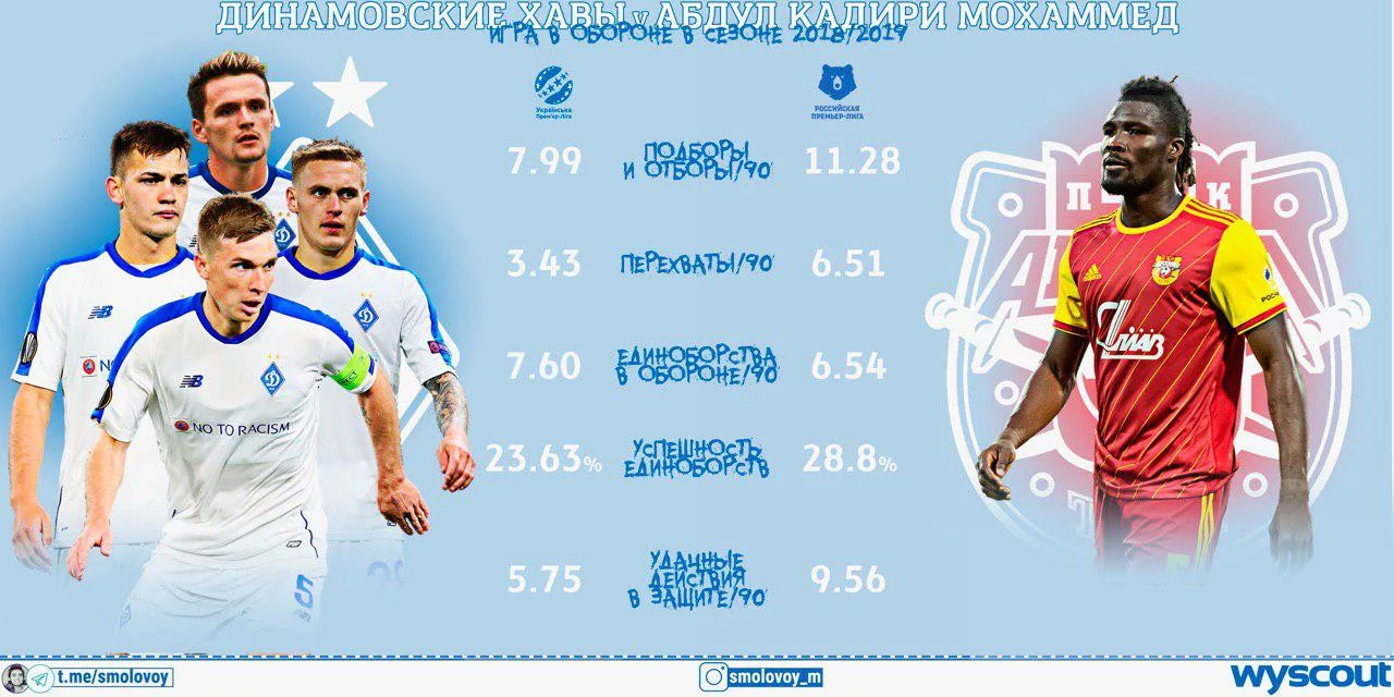 У складі Динамо конкурентами Мохаммеда в центрі поля будуть Сидорчук, Андрієвський, Буяльський і Шепелєв. Якщо взяти середні показники цих чотирьох виконавців на позиції центрального півзахисника та показники Кадірі в минулому сезоні, матимемо наступну картину: