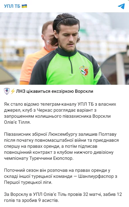 Екс-півзахисник Ворскли Олів'є Тілль може перейти в ЛНЗ, повідомляє Telegram-канал УПЛ-ТБ.