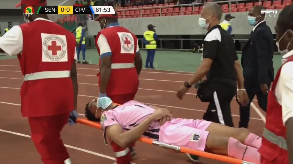 Мане відгукнувся на передачу з глибини і намагався зачепитися за м'яч. Його ривок завершився брутальним зіткненням головами з Возіньєю. Голкіпер Кабо-Верде постраждав більше за Садьйо. Він нерухомо впав на газон, відразу ж спробував піднятися, але в стилі нокаутованого боксера знову завалився.