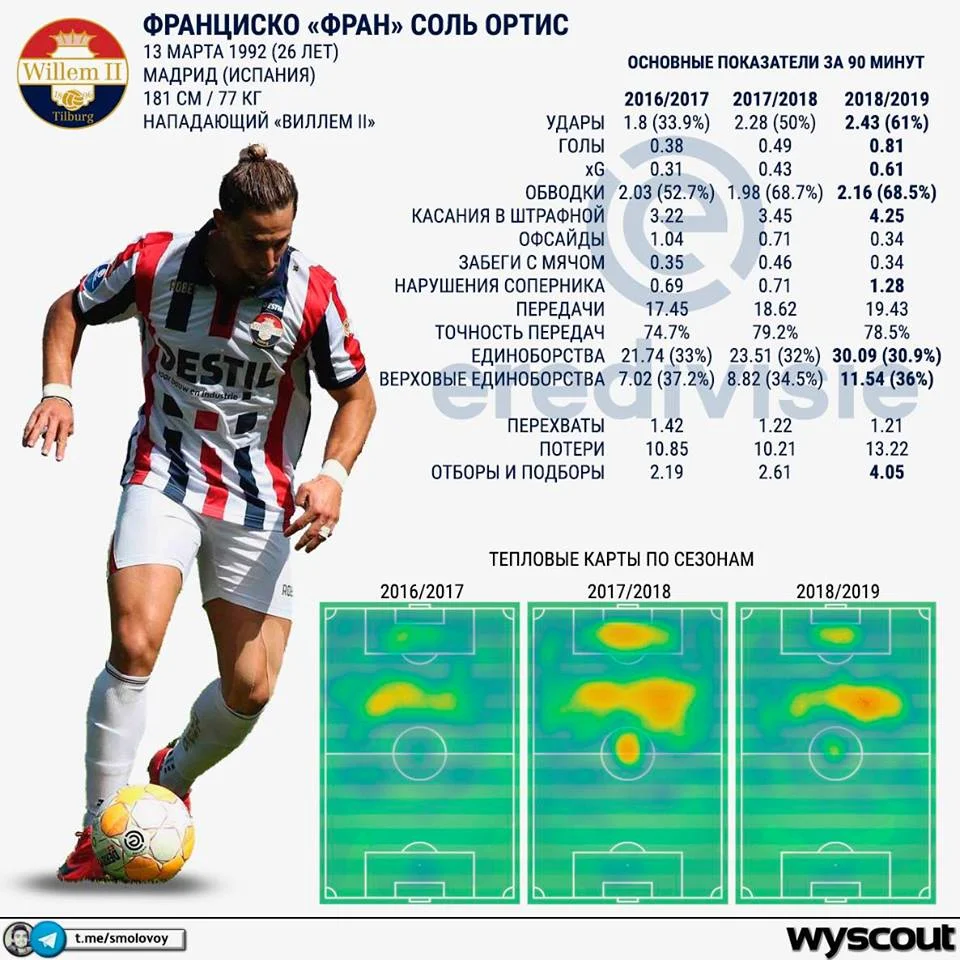 Про це говорять не лише в наших ЗМІ, а й у грецьких та голландських. Голеадор Фран Соль, показники якого ростуть з кожним сезоном ось уже 3-й рік поспіль, привернув масивну увагу не одного клубу. Мабуть, найцікавіший варіант на ринку, в якого варто інвестувати серйозні як для УПЛ, але помірні як для статусу Динамо 5 млн євро. Конкуренція захмарна – амбіційні іспанські клуби Севілья та Валенсія не проти підсилитись результативним бомбардиром. То хто ж він такий, лідер суперскромного Віллем ІІ, який вражає Європу?