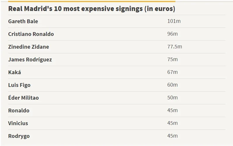 Якщо аналізувати статистичні дані, то типова покупка Переса на трансферному ринку виглядала б приблизно так: не іспанець, близько 24 років (середній вік його підписань – 23,45), переважно правша (тільки 19 були шульгою), а середня вартість складала б близько 22 мільйонів євро.