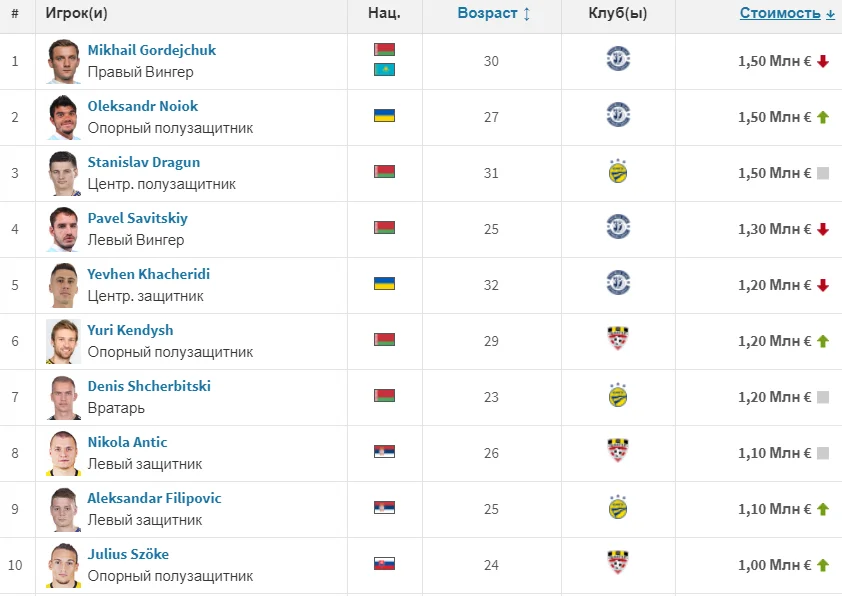 Відомий портал Transfermarkt оновив трансферну вартість гравців чемпіонату Білорусі.