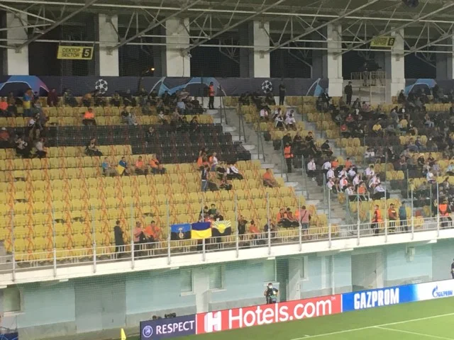 Шериф представляє в єврокубках Молдову і виступає під прапором Молдови, але під час матчу нічого не вказує, що ти в Молдові. На стадіоні ні від офіційних осіб, ні від вболівальників жодного разу не довелося почути румунську мову. Зате довелося почути уколи в сторону України: "ну шо, ше не вмерла?", "Шахтёр, вали домой на Донбасс".