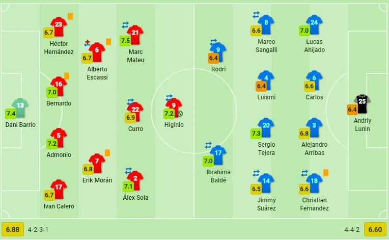 Він не мав багато роботи у матчі, який запам’ятається великою кількістю боротьби та скандальними рішеннями VAR. Однак, Андрій вперше за тривалий час отримав одну з найнижчих оцінок у складі Ов’єдо. Аналітичний портал SofaScore оцінив його дії на 6,4 бала, стільки ж отримали ще два гравці – форвард Родріго та хавбек Луїсмі. Наш голкіпер нагадав про себе на 23-й хвилині… коли виймав м’яча із сітки власних воріт. Його провини тут немає, не виручив би і Нойєр з тер Штегеном, адже Іхідіо вдався філігранний удар під стійку.