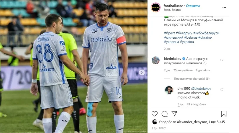 Канал Футбол опублікував фото Мілевського з матчу півфіналу Кубка Білорусі, де асист українського форварда допоміг Динамо Брест святкувати перемогу над солігорським Шахтарем (2:0).