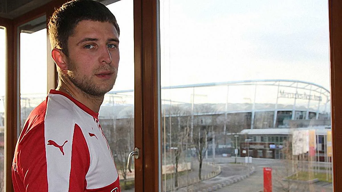 Кравець позує у футболці свого нового клубу / фото ФК "Штутгарт"