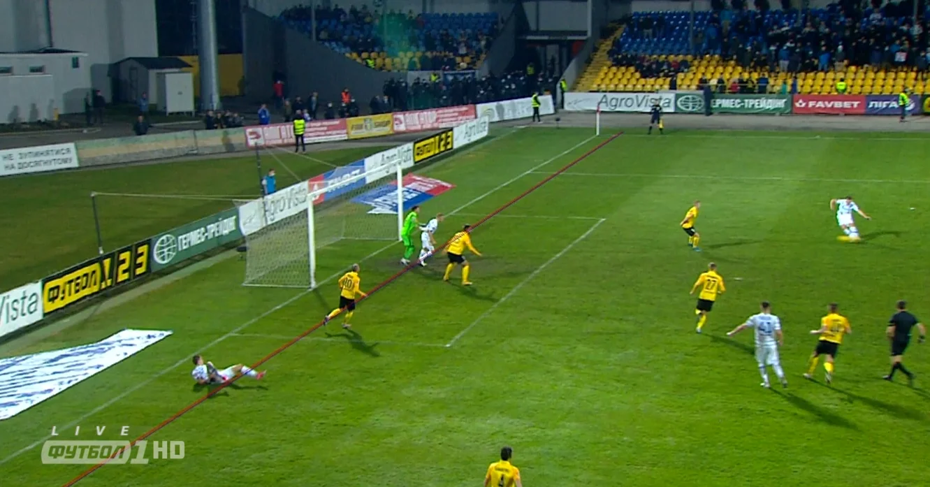 Пенальті? Дуже схоже на те. Кендзьора виконав простріл, Мірошніченко виставив руку з-за спини. Монзуль сьогодні на VAR, дуже довго перевіряла епізод, після чого ще й Кривушкін побіг дивитися повтори. Безглуздий 11-метровий привіз захисник Олександрії, простенький же був момент. Шапаренко дуже впевнено виконав пенальті на 35 хвилині – Паньків вгадав, але не встиг дотягнутися. Забарний нині подобається в атаці. Де Пена подав штрафний, Ілля перевисів Сітала, а Паньків ефектно витягнув.