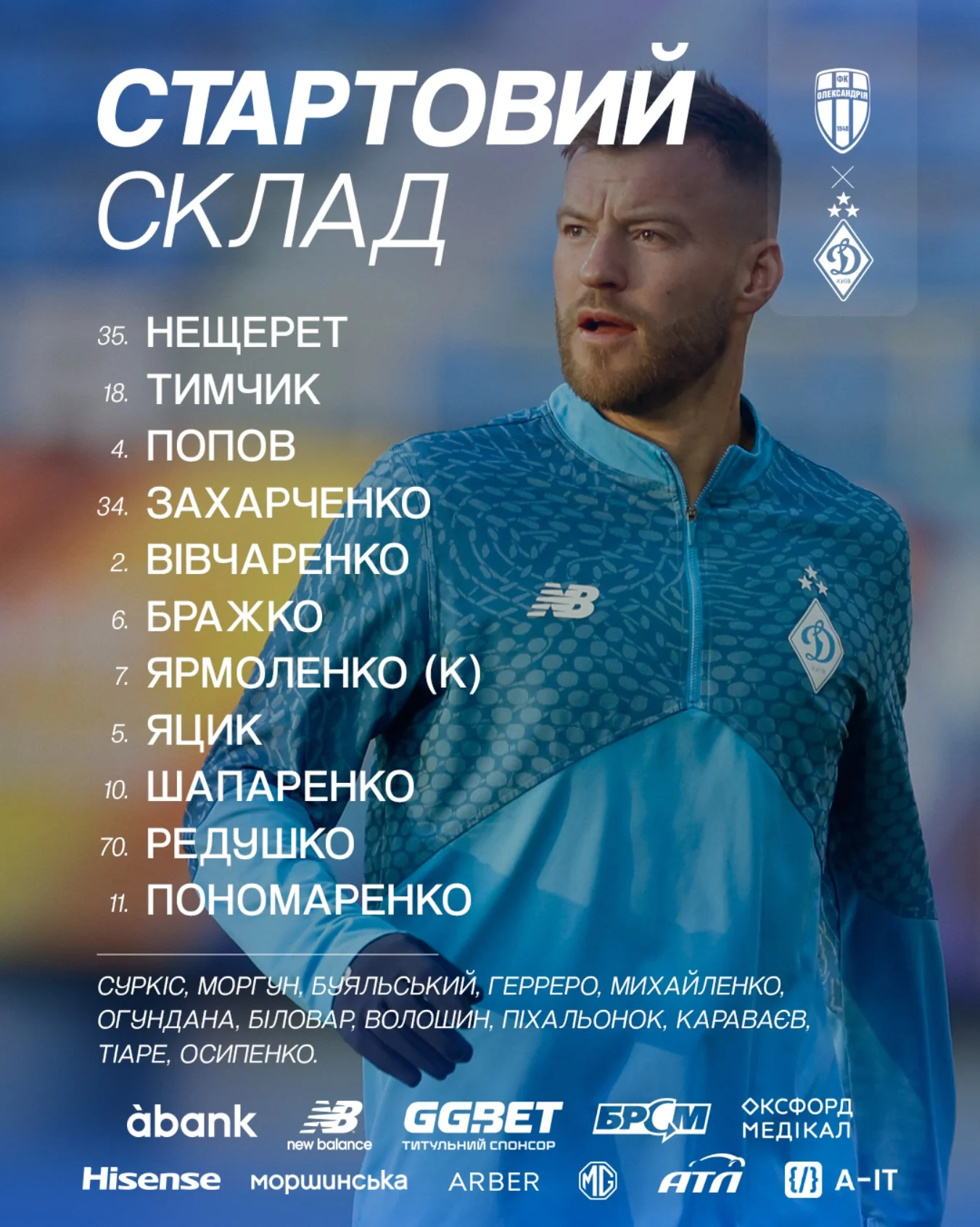 Олександрія – Динамо: стартові склади і онлайн-трансляція матчу між віце-чемпіоном та чемпіоном України