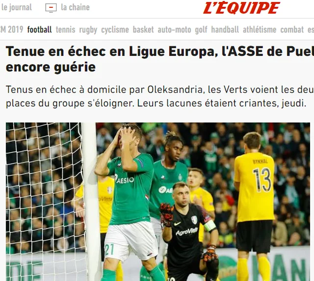 Сент-Етьєн – Олександрія, матч ЛЄ 24 жовтня 2019: огляд французьких ЗМІ