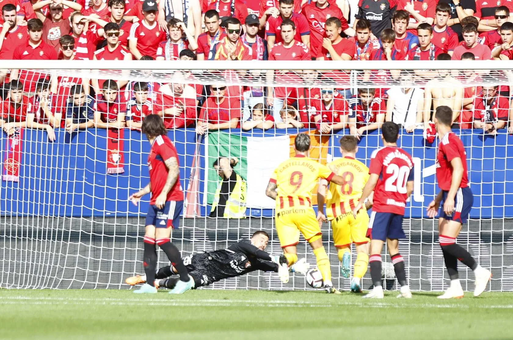 Два поспіль добротні сейви Гассаніги. Абде, який грає в оренді з Барселони, просто тероризує фланг Циганкова. Доводиться Віктору все частіше страхувати Арнау Мартінеса. Однак для 21-річного вінгера збірної Марокко не проблема і 2-3 опонентів накрутити. Другий удар Абде заблокували, у третьому моменті Еззалзулі підступно цілив у ближній кут – Гассаніга з величезними проблемами витягнув. Через Циганкова гості виходили з дуже потужного пресингу Осасуни, яка значно менше володіє м'ячем, але гостріша та стабільніша у створенні моментів.
