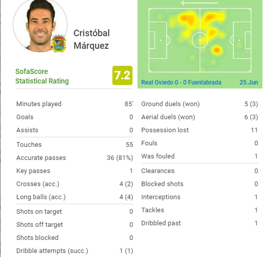 Крістобаль скористався дуже неспішним темпом звітної гри. Створив 1 більш-менш перспективний момент своїм пасом, віддав 4 точні дальні передачі з 4 спроб, виграв 6 єдиноборств з 11, по разу відзначився дриблінгом, відбором і перехопленням. Був найкращим у складі Фуенли за подачами з флангів (2 з 4 пройшли), опинився у топ-5 за кілометражем і точністю передач. Отримав найкращий бал від SofaScore за останні 15 матчів. Загалом обидві команди ніби свідомо відіграли в економ-режимі перед дуже важливими недільними матчами проти аутсайдерів, де розжитися трьома очками буде значно реальніше.
