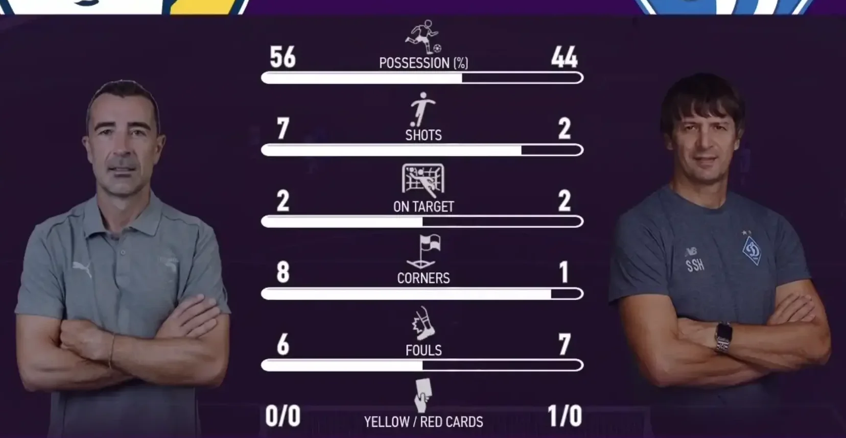 Виклавшись у перші півгодини, Пафос майстерно спалив останню 15-хвилинку падіннями, допомогами лікарів та відсиджуванням у середньому блоці. І все одно острів'яни вилітали в контратаки й заробляли кутові. Зрештою, команди відправились відпочивати за мінімальної переваги кіпріотів.