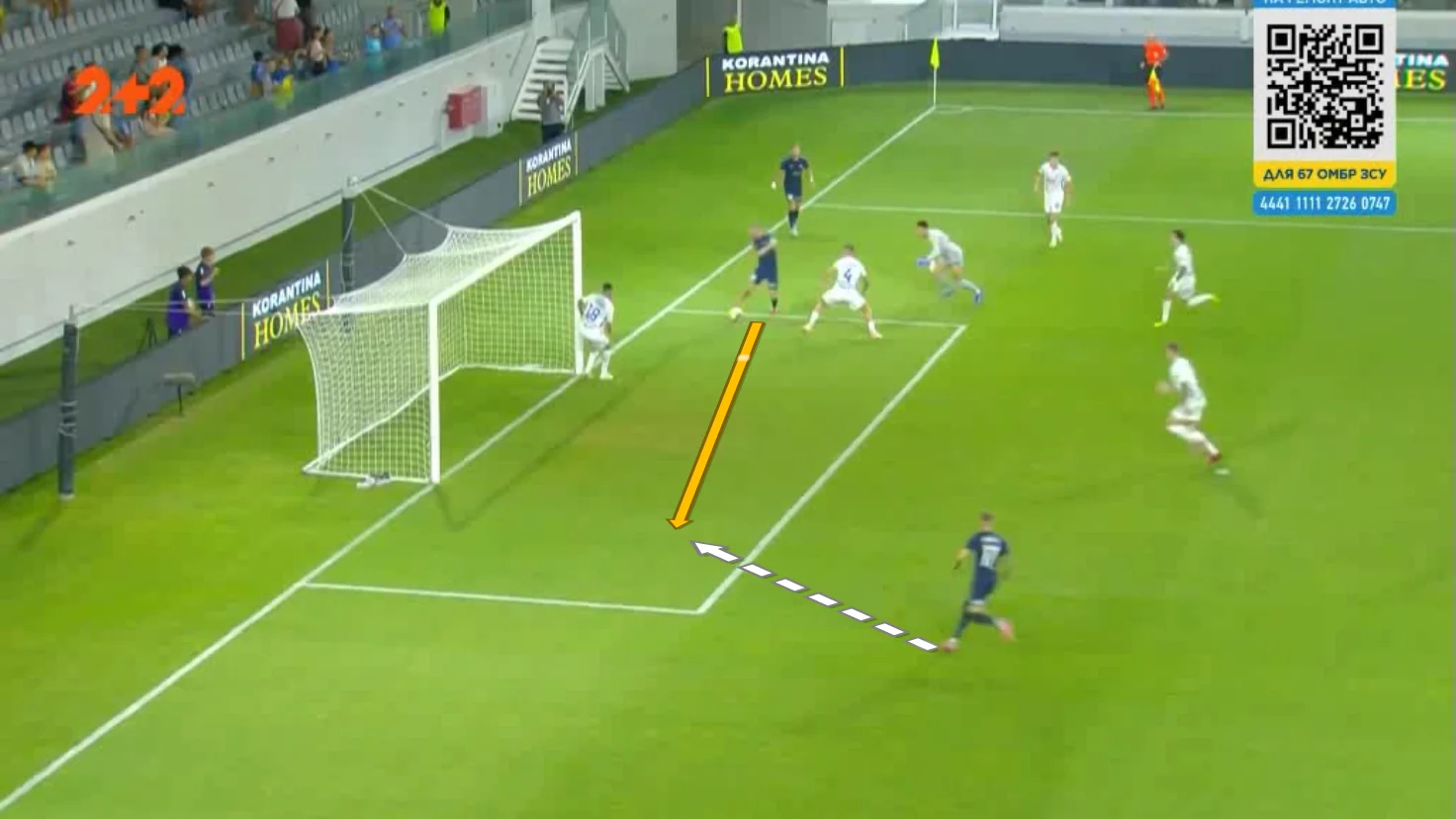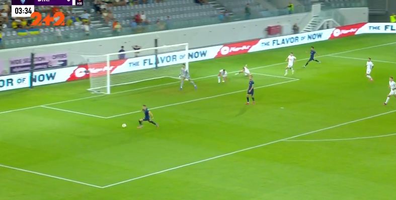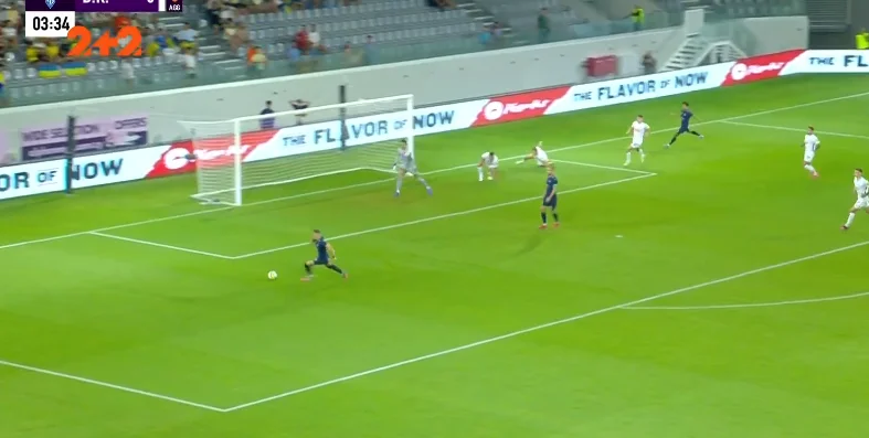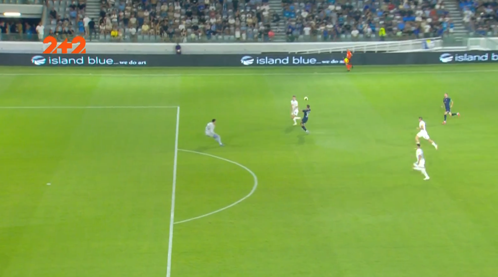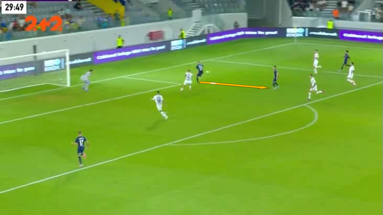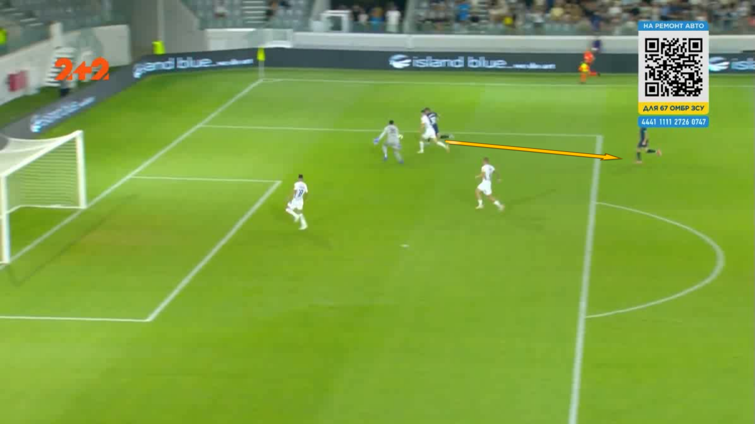 Форварда загнали у глухий кут, однак форвард скинув м'яч Танковічу. Серб одразу ж пробив у Попова, підхопив відскок і прострілив під удар Оршічу в порожні. 1:0!