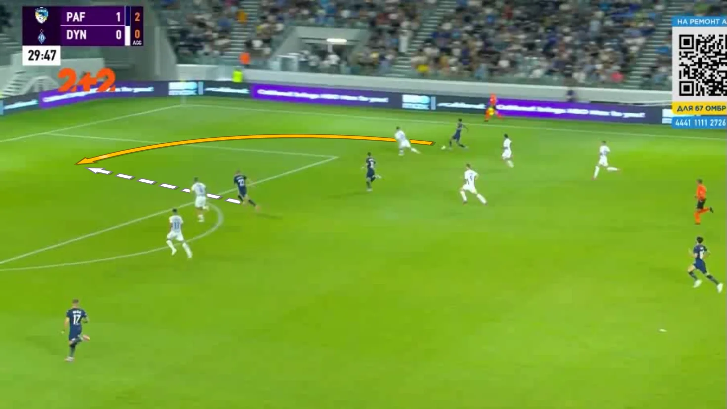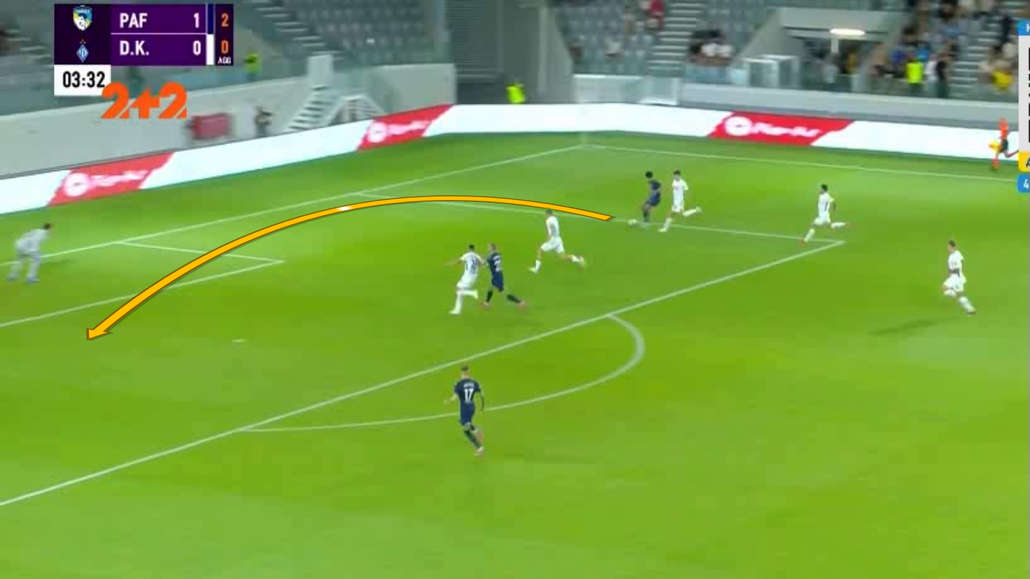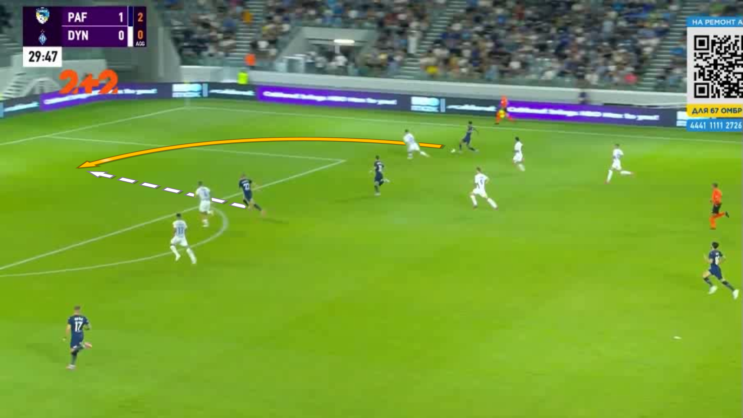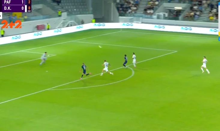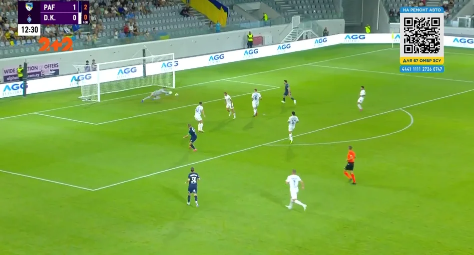 Один із найкрасивіших моментів Пафос створив на 31-й хвилині. Спочатку Коррея обігрався у стіночку з Суньїчем і втік по флангу від Дубінчака, після чого пішов простріл на ближню. Танковіч п'яткою скинув його під удар, а Драгомір у стрибку зарядив у дальній нижній – від гола врятувала нога Попова.