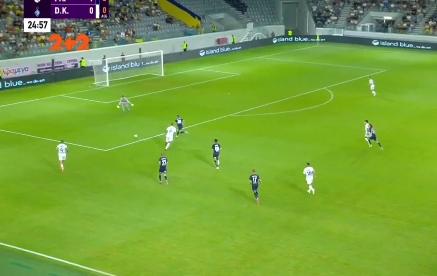 Але це все – фігня у порівнянні з роботою на власній половині. Пафос просто знищив Динамо на контратаках. Підопічні Олександра Шовковського страшно нервували, припускались катастрофічних помилок і отримали по власних воротах 7 ударів. Ледь не всі з них мали залітати у ворота.