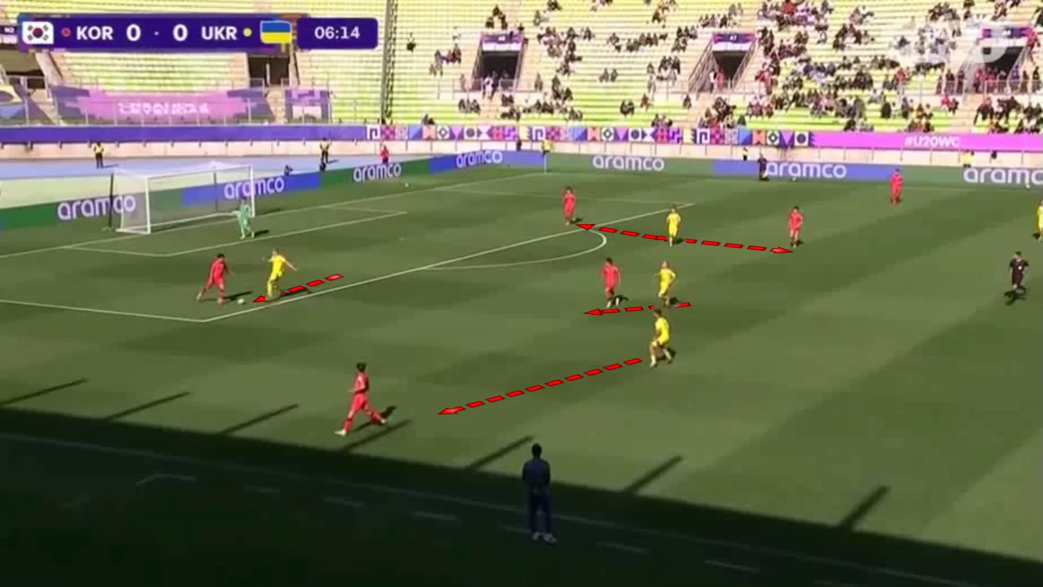 В наступні 20 хвилин команда відійшла назад, нічого не створюючи й захищаючи рахунок, однак контргра зникла. А далі увімкнулася Південна Корея – тренерський штаб і всі футболісти відзначили, що підсіли фізично й ментально лишень по перерві, однак проблеми виникли ще до неї. Виносити м'яч із порожніх воріт і радіти рішенню VAR у моменті з падінням корейця у нашому штрафному довелося ще в першому таймі.