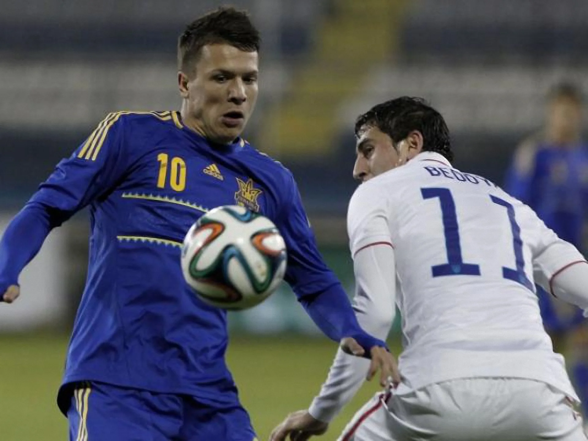 Україна: П'ятов (гк) − Хачеріді, Тимощук (к), Кучер, Ярмоленко, Зозуля, Коноплянка, Шевчук, Ротань, Федецький, Гармаш