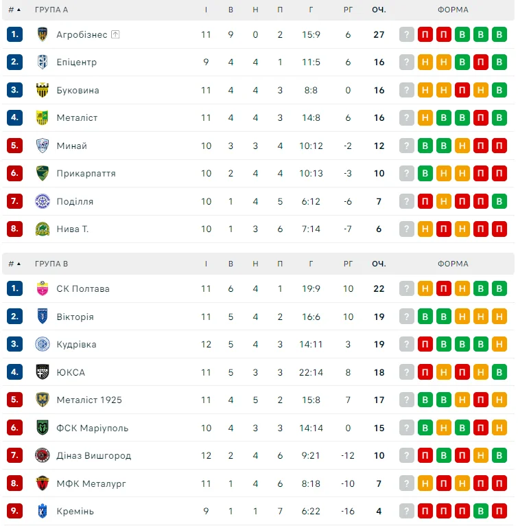 Перша ліга: Маріуполь розгромив Діназ, Полтава втратила перемогу над Металургом на 90 хвилині, Буковина зіграла внічию
