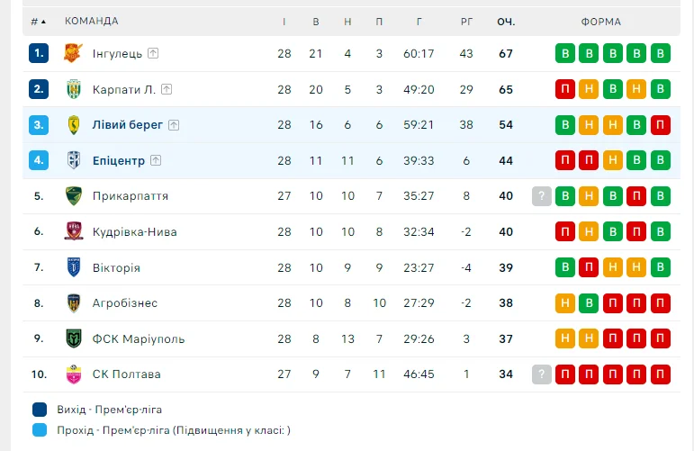 Перша ліга: визначились команди, які боротимуться у плей-офф за вихід в УПЛ