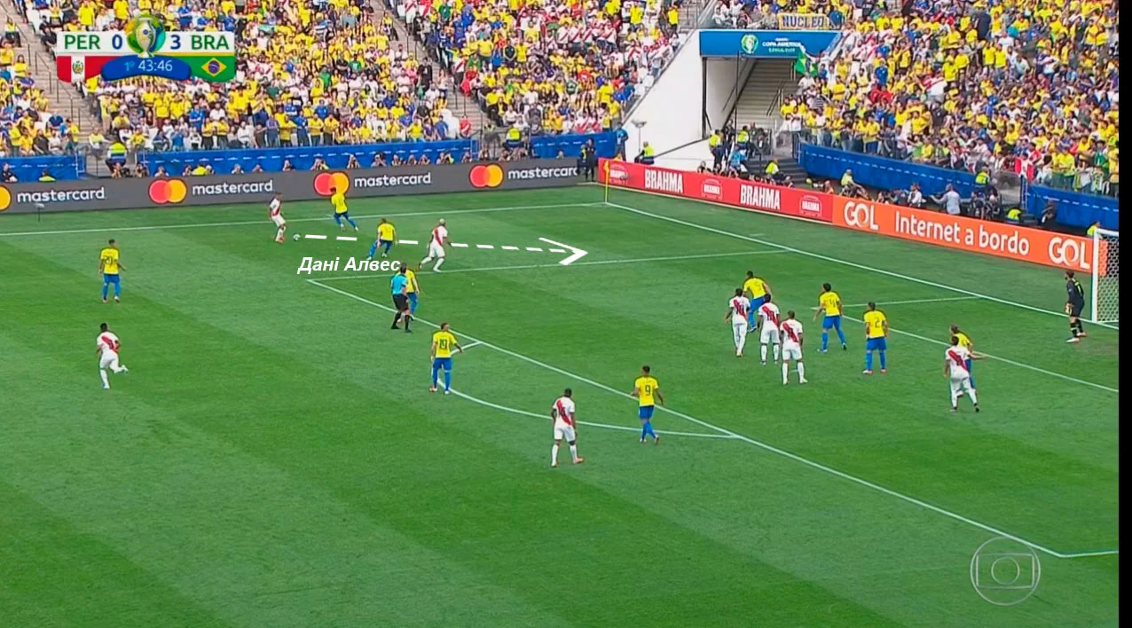 Втім, Перу дійсно розбили в ефектному стилі. Так, бразильці провели 31 спробу обіграшу один-в-один, з яких 20 були успішними. 12 з них зробили флангові нападники (фактично вінгери) Евертон та Жезус, а також Дані Алвес – при цьому фулбек організував перший гол, на дриблінгу прорвавши блок у чотири футболіста суперника. Також "селесао" виконали 5 розрізних передач, а з 18 ударів по воротах 14 пройшло з меж штрафного – і 9 цілили у площину (+ стійка).
