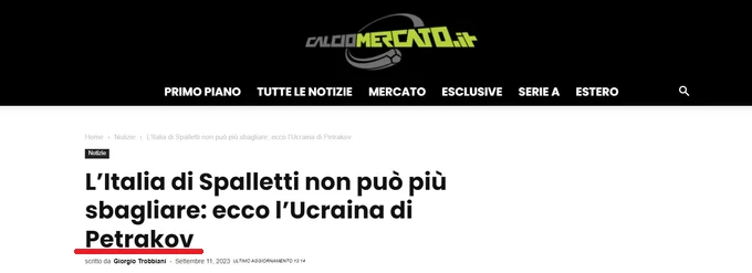 Видання Calciomercato помилилося вже у заголовку, назвавши Олексндра Петракова головним тренером збірної України. Незабаром таки виправили на Сергія Реброва, але в тексті ще раз недоречно згадали колишнього наставника.
