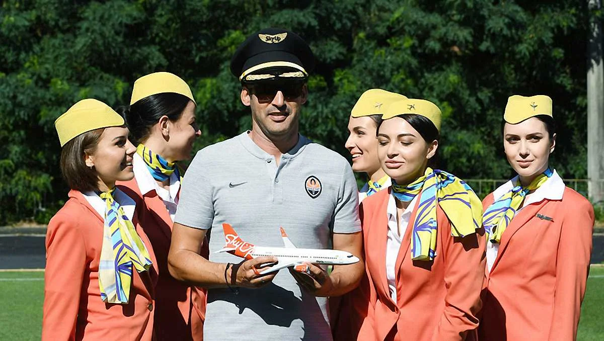 Такий поворот подій найбільше сподобався головному тренеру Шахтаря Паулу Фонсеці, який приміряв кашкет капітана повітряного судна та охоче фотографувався із гарячими бортпровідницями.