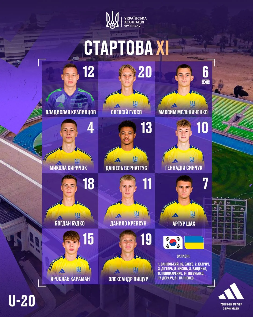 Тренерський штаб збірної України U-20 виставив доволі очікуваний склад. Вийшли усі найсильніші. Кревсун, Синчук, Крапивцов, Шах, Гусєв, Караман – всі вони мають досвід УПЛ і топ-ліг. Невеличкою несподіванкою стала тільки відсутність Пономаренка, якого залишили у запасі.