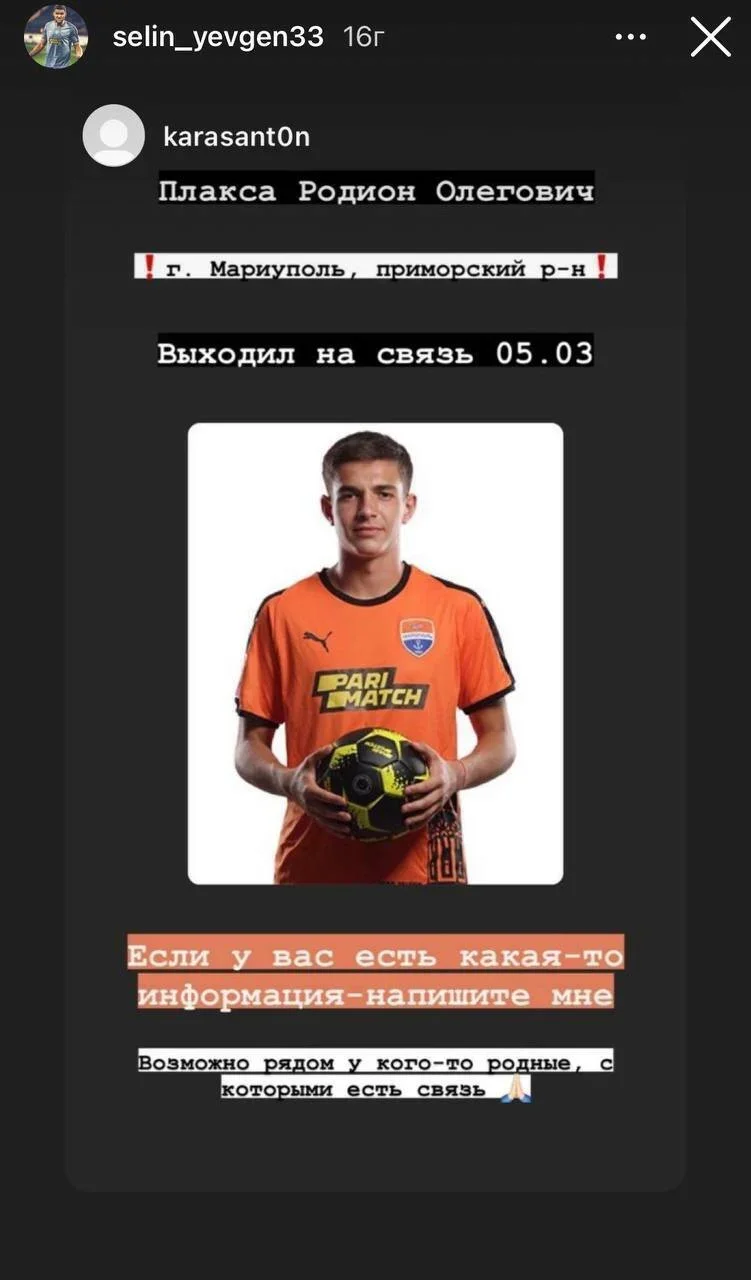 Футбольний агент Олександр Панков, захисник Десни Євген Селін та інші футболісти УПЛ на своїх сторінках у соціальній мережі Instagram забили на сполох і закликають всіх, кому бодай щось відомо про Родіона, якнайшвидше сповістити про це.