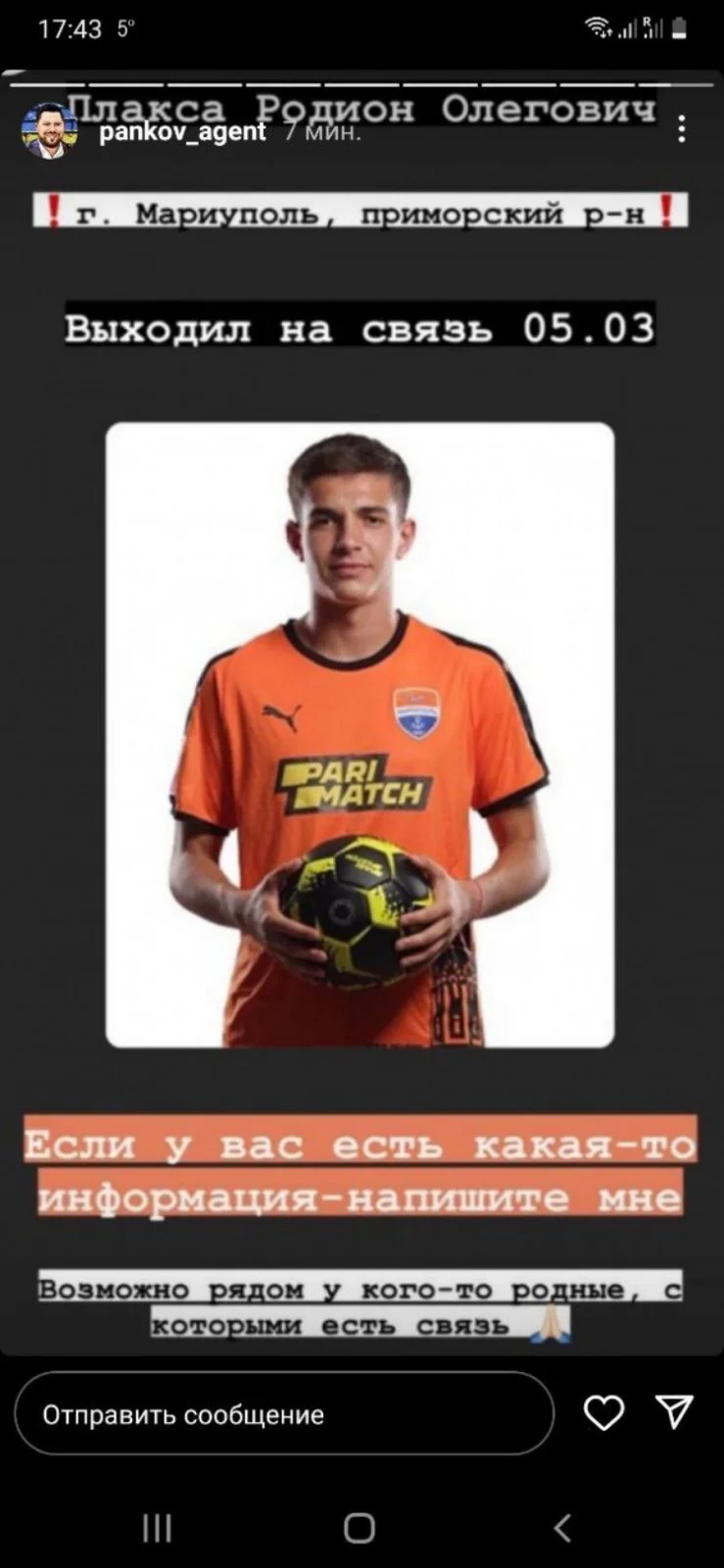 Нагадаємо, Плакса є одним із найталановитіших футболістів молодіжного складу Маріуполя, кандидатом у молодіжну збірну України. Ситуація у Маріуполі надзвичайно складна, місто піддається постійному бомбардуванню та обстрілам і майже стерте з лиця землі.