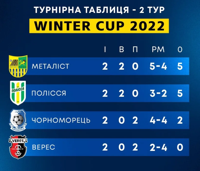 Нагадаємо, організаторами "Зимового кубка" є телеканали "Футбол". У ньому беруть участь по дві команди від Прем'єр-ліги та дві – від Першої ліги. Еліту українського футболу представляють Чорноморець та Верес, а за честь другого за силою дивізіону віддуваються Металіст і Полісся, які, зрештою, і вийшли у фінал.