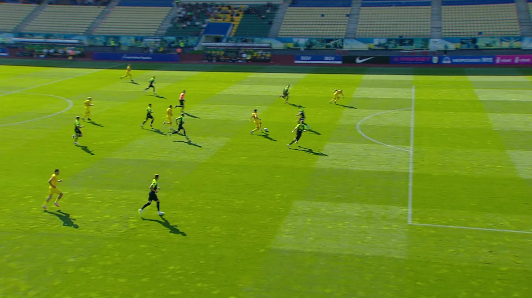 Перший тайм виявився провальним для Полісся, тож Юрій Калітвінцев у роздягальні провів потрійну заміну. Крушинський, Огіря та Янаков поступилися місцем Кушніренку, Танковському й Макуана. Втім, цей хід на старті другого тайму нічим не допоміг.